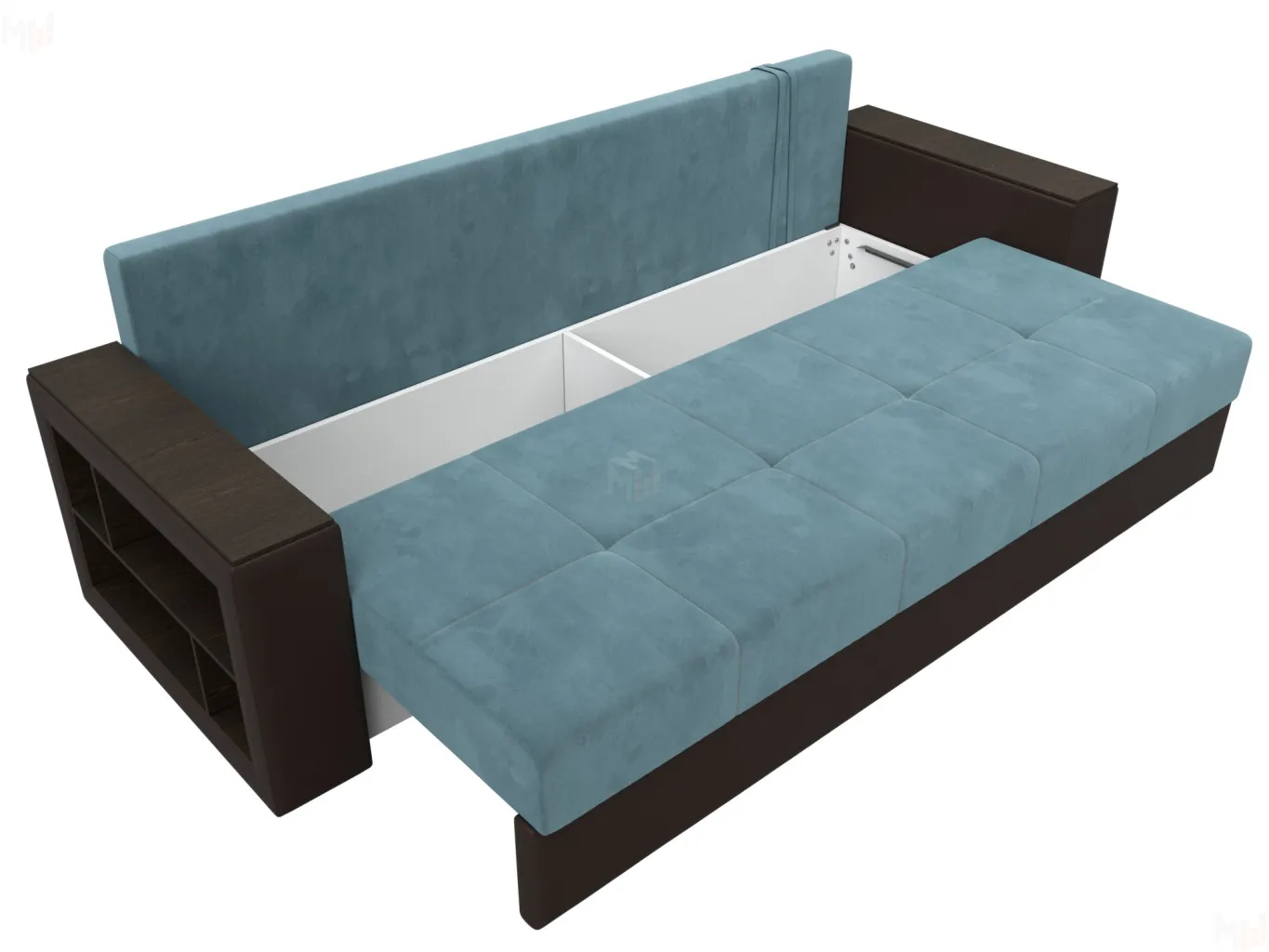 Диван прямой Дубай Лайт полки слева ( Бирюзовый\Коричневый )