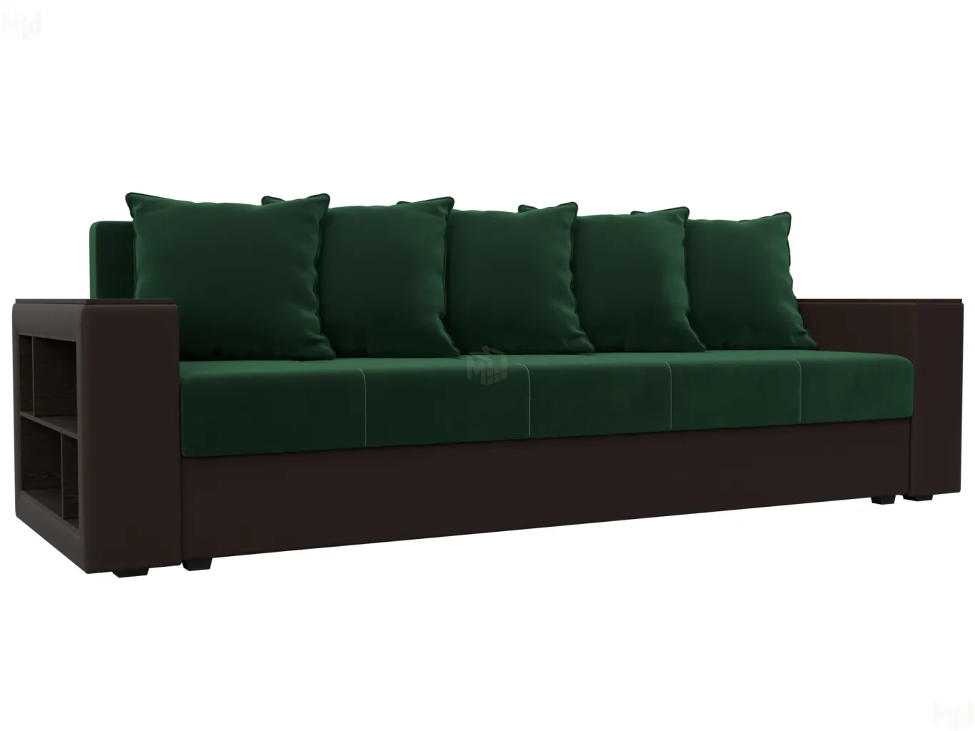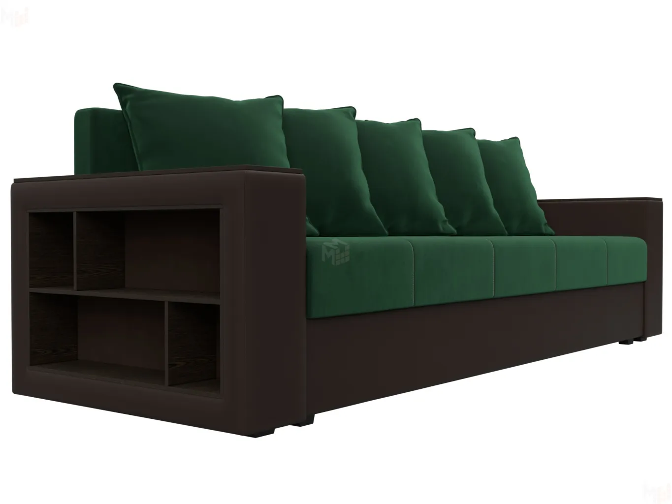 Диван прямой Дубай Лайт полки слева ( Зеленый\Коричневый )