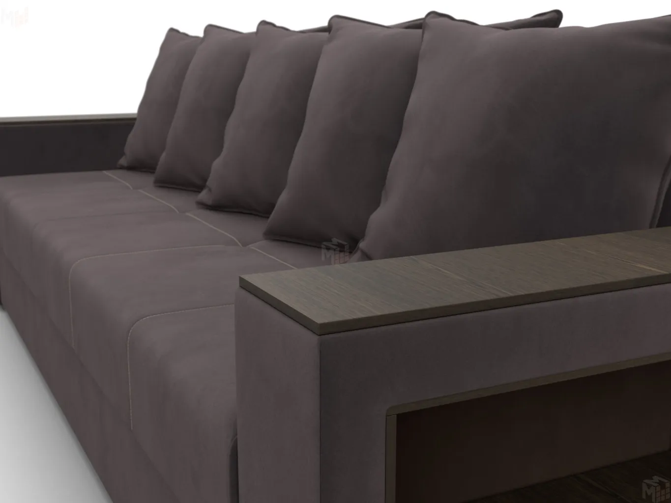 - Мягкая спинка, состоящая из 5 съемных подушек.