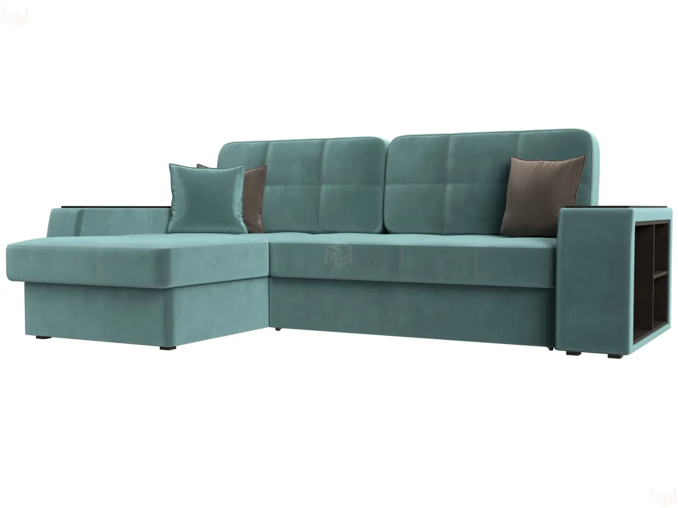 Шикарный угловой диван Брюссель удобен и функционален в использовании. Подлокотники выполняют роль мини-столиков. Одна из боковин дополнена книжными полками, декорированным «под дерево». Под длинной боковиной расположена ниша для белья. Изделие оснащено удобным механизмом трансформации в двуспальную кровать. -