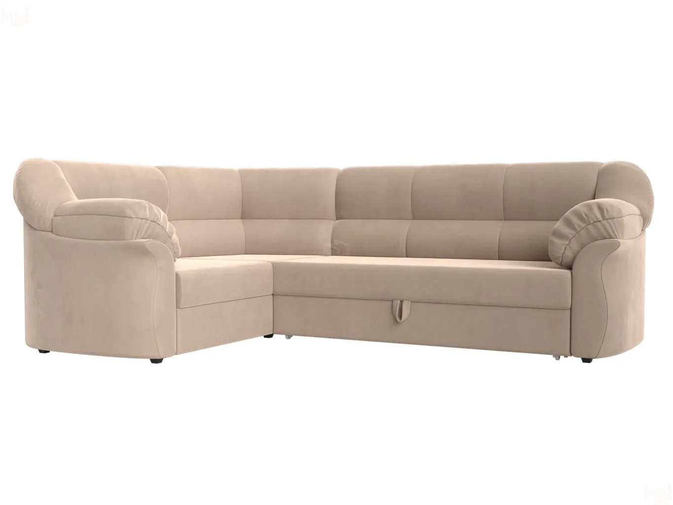 Карнелла – недорогой угловой диван, красивый снаружи и прочный внутри. Он устойчиво стоит на деревянных ножках, украшая своим присутствием гостиную. Спинка дивана украшена широкой каретной стяжкой. Угол можно расположить как справа, так и слева. Изделие легко раскладывается, образуя комфортное спальное место.