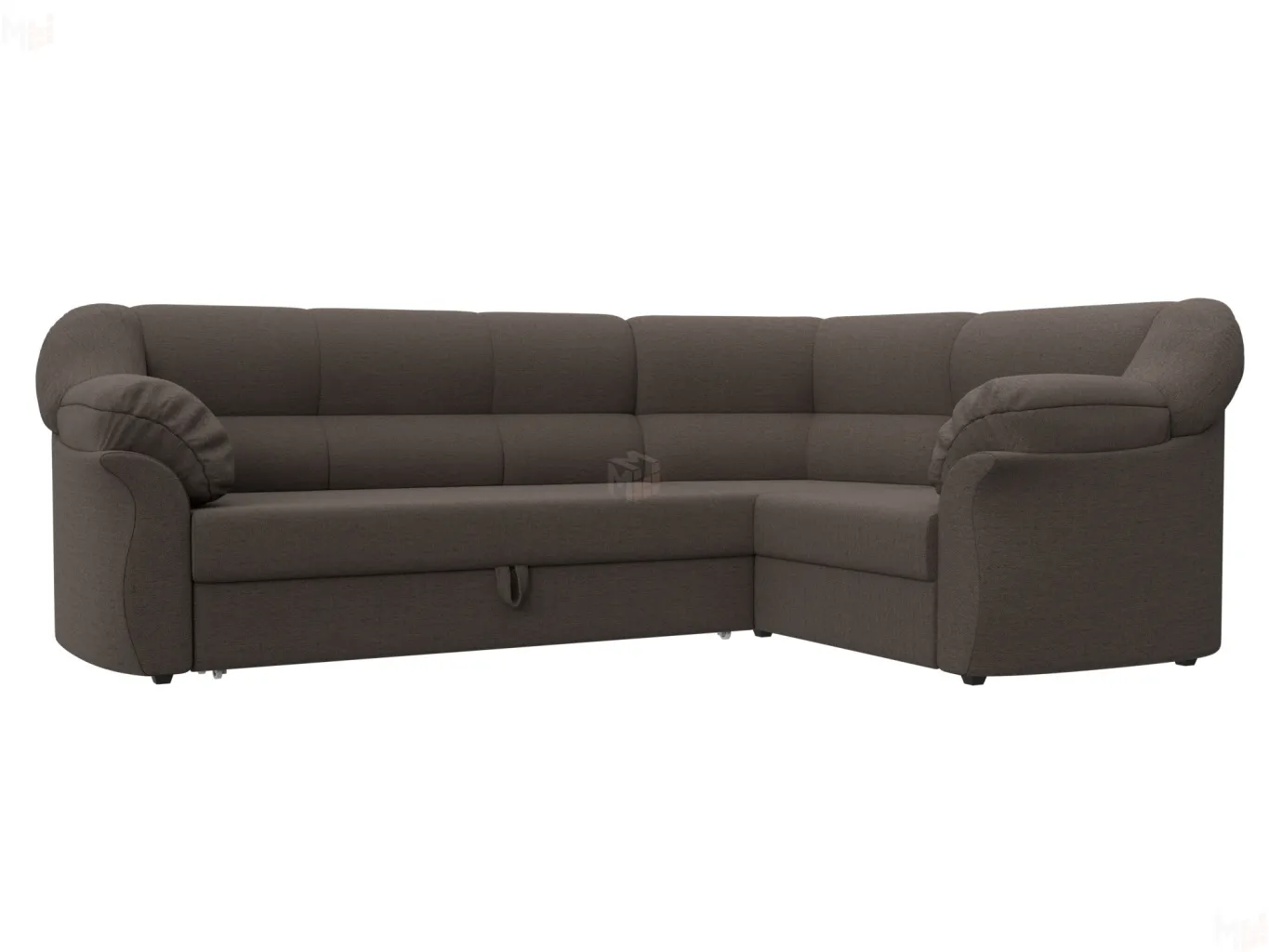 Карнелла – недорогой угловой диван, красивый снаружи и прочный внутри. Он устойчиво стоит на деревянных ножках, украшая своим присутствием гостиную. Спинка дивана украшена широкой каретной стяжкой. Угол можно расположить как справа, так и слева. Изделие легко раскладывается, образуя комфортное спальное место. -