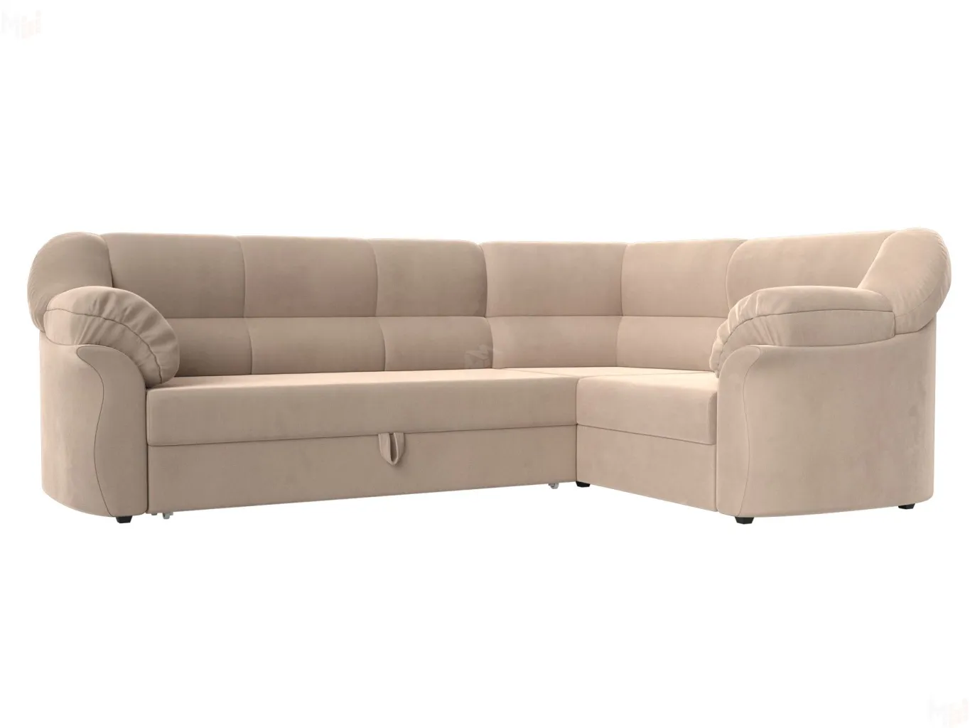Карнелла – недорогой угловой диван, красивый снаружи и прочный внутри. Он устойчиво стоит на деревянных ножках, украшая своим присутствием гостиную. Спинка дивана украшена широкой каретной стяжкой. Угол можно расположить как справа, так и слева. Изделие легко раскладывается, образуя комфортное спальное место.