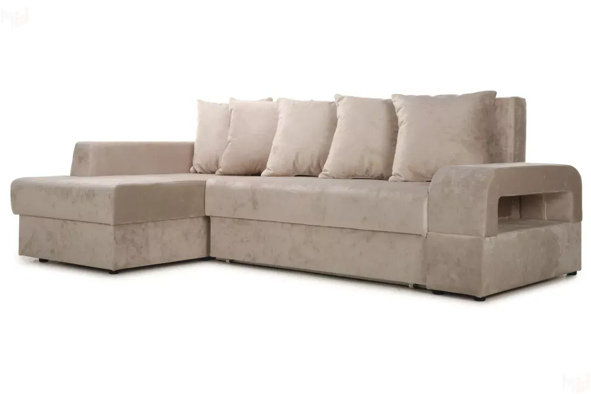 Диван угловой Марго Бежевый Левый Велюр