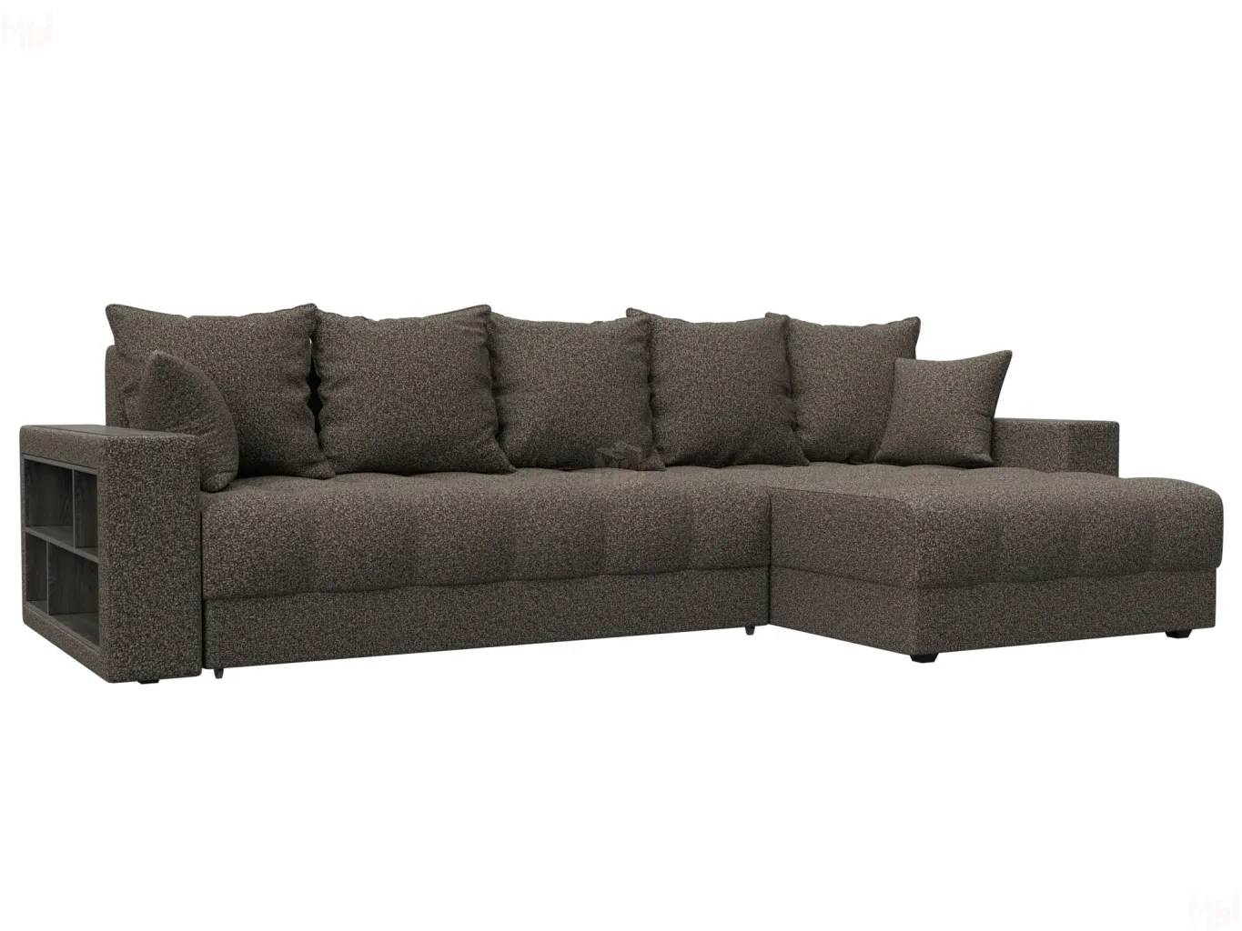 Угловой диван с декором и полкой Лига-050 НПБ – современный диван с лаконичным дизайном и невероятной функциональностью. В считанные секунды, он трансформируется в широкую кровать. Изделие оснащено мягкими подлокотниками и съемными подушками, дополнено вместительными ящиками для белья. Комфортабельность отдыха гарантирована. -
