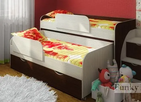 Двухъярусная низкая кровать Фанки Кидз-8 с выдвижным ящиком.