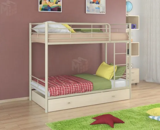 Все металлические элементы кровати покрыты износоустойчивой краской без запаха. Двухъярусную кровать можно собирать и разбирать неограниченное количество раз, и от этого она не потеряет в прочности и качестве. -