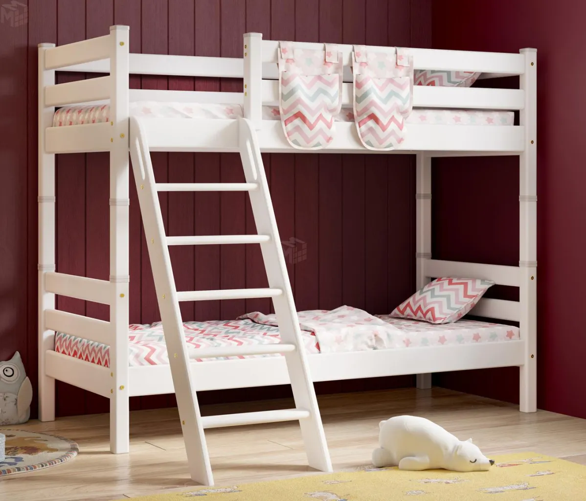 Вариант 10 двухъярусная кровать «Соня» с наклонной лестницей — один из примеров идеального сочетания практичности, оригинальности и долговечности. Цветовое исполнение подходит сразу для нескольких стилей, а габариты — для комнат разной площади. Мебель для детской создается из безопасных материалов с отличной износостойкостью.