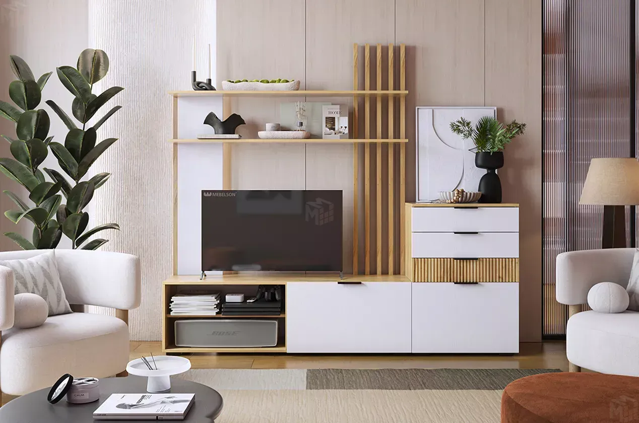 Гостиная Бери К3 дуб крафт золотой/белое дерево