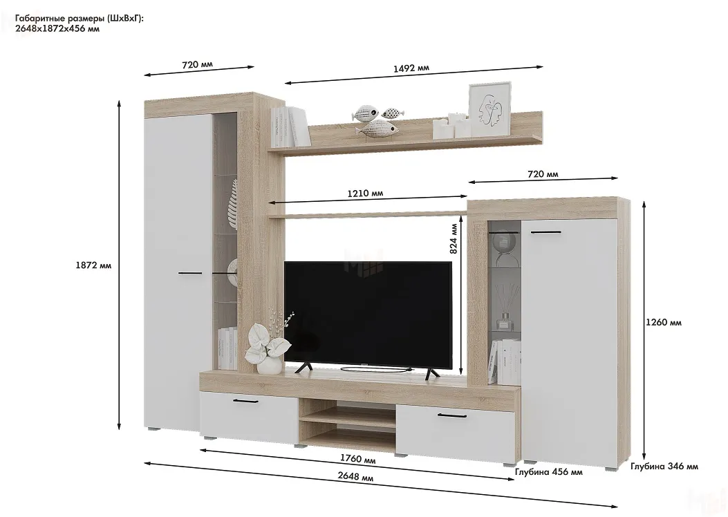 ширина 2648 мм, глубина 456 мм, высота 1872 мм
