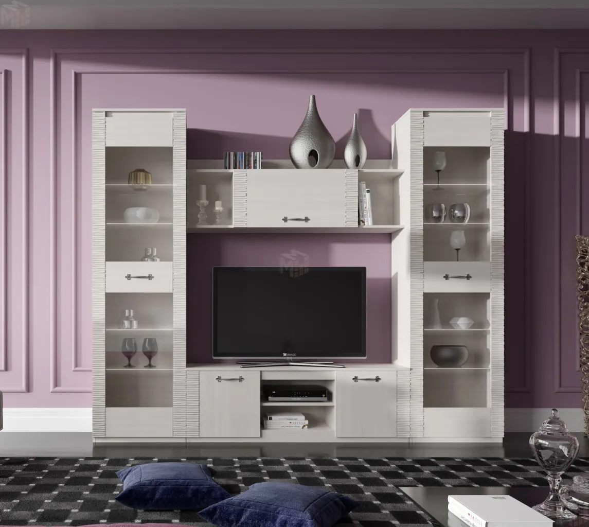 Состав композиции: витрина 2 шт, тумба ТВ, полка закрытая.