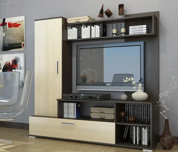 В этой маленькой стенке можно разместить небольшое количество самых необходимых вещей. Благодаря компактным размерам эта стенка впишется даже в очень маленькую комнату. Модель выполнена из ЛДСП в двух цветах: темный корпус (Венге) и светлый фасад (Дуб).