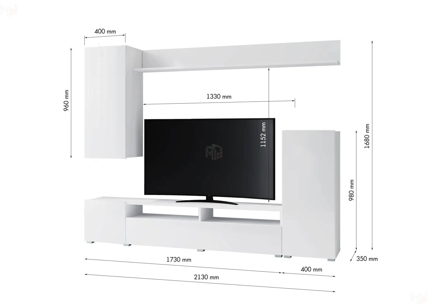 ширина 2130 мм, глубина 350 мм, высота 1680 мм
