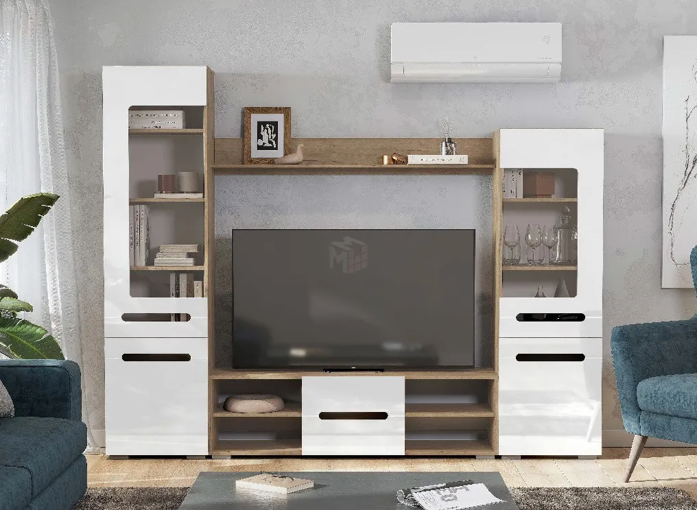 Гостиная МГС 6 Исп 1 Дуб золотой-Белый глянец