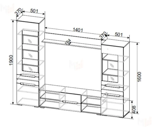 ширина 2403 мм, глубина 370 мм, высота 1900 мм