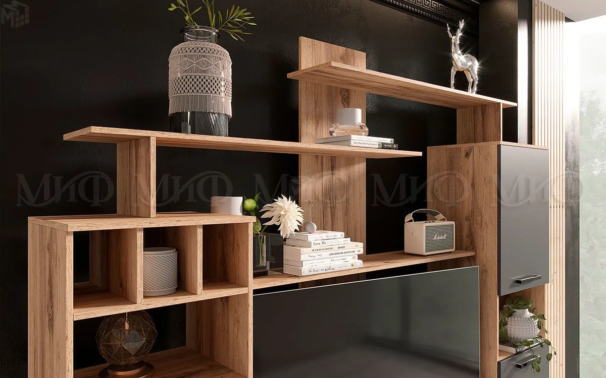 Гостиная выполнена в цвете дуб крафт, фасады МДФ Графит.