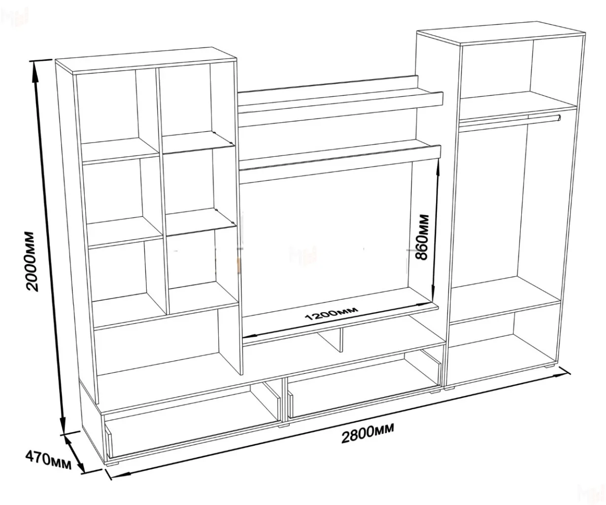 Гостиная Ненси-1 – это апофеоз лаконичности в деталях и цвете: строгость линий, сдержанность в цветовой гамме, минимализм в декоре. Между тем в комплекте предусмотрен набор самых необходимых полок и шкафов: для платья, белья, посуды, книг и прочих мелочей. Для современных плоских мониторов или телевизоров предусмотрена вместительная ниша.