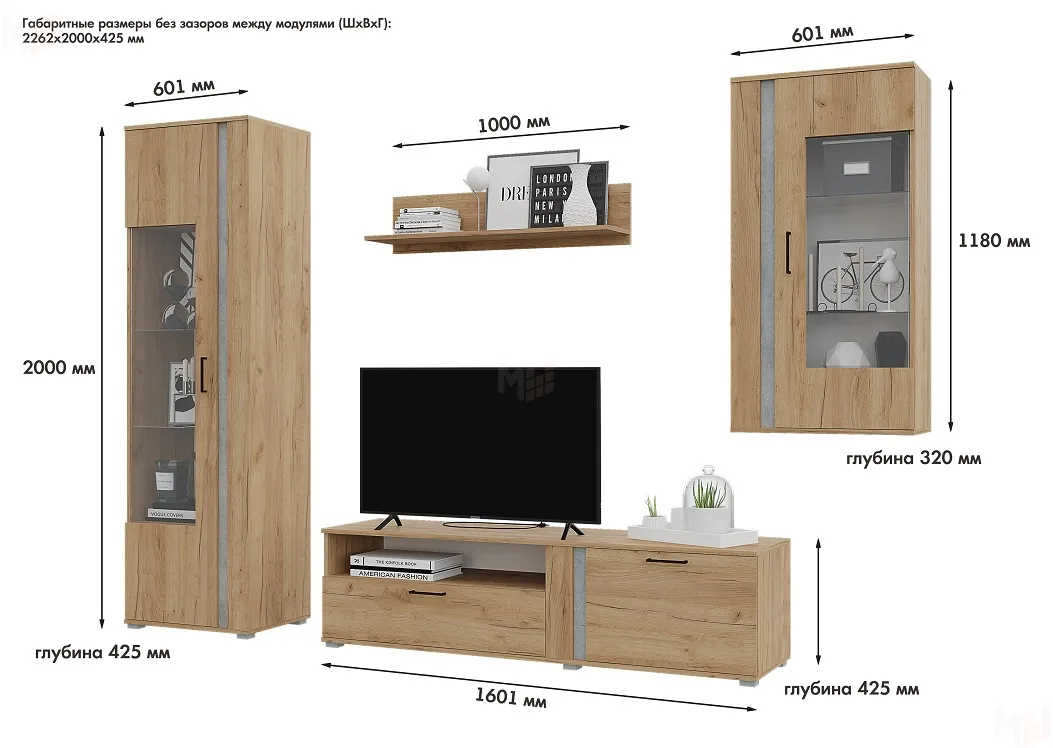 Гостиная Омега ЛДСП состоит из 4-х предметов.
