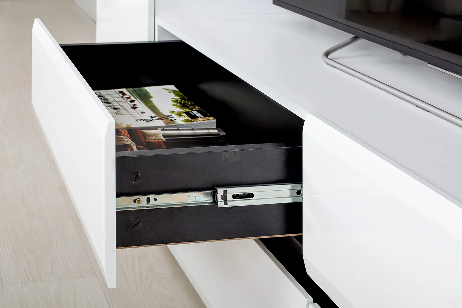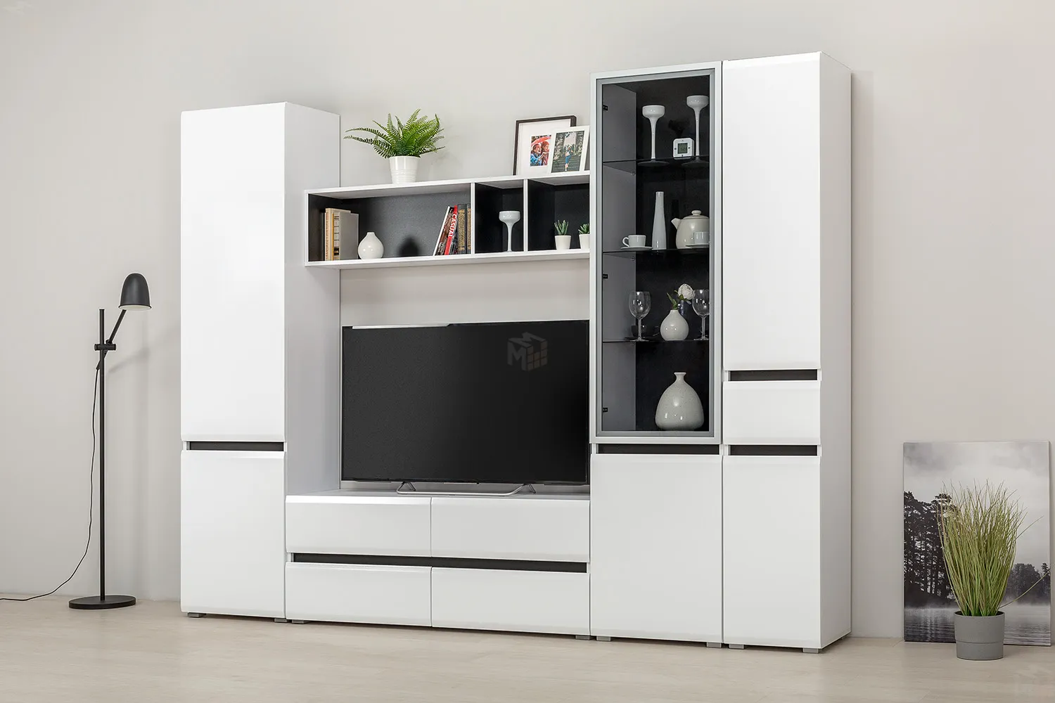 - шкаф с ящиком Сидней 13.202 - Ш350 х Г413 х В2052 мм.Современное, модное и стильное решение для гостиной - коллекция Сидней. Лаконичные белые глянцевые фасады создают ощущение чистоты, лёгкости и свободного пространства. Акцентом выступают чёрные горизонтальные вставки и тонированное стекло витрины. Чёрная задняя стенка эффектно подчеркивает наполнение шкафов. Фасады открываются за край либо нажатием (механизм push-to-open). Распашные фасады оснащены доводчиками. Полка крепится к боковинам соседних модулей.
