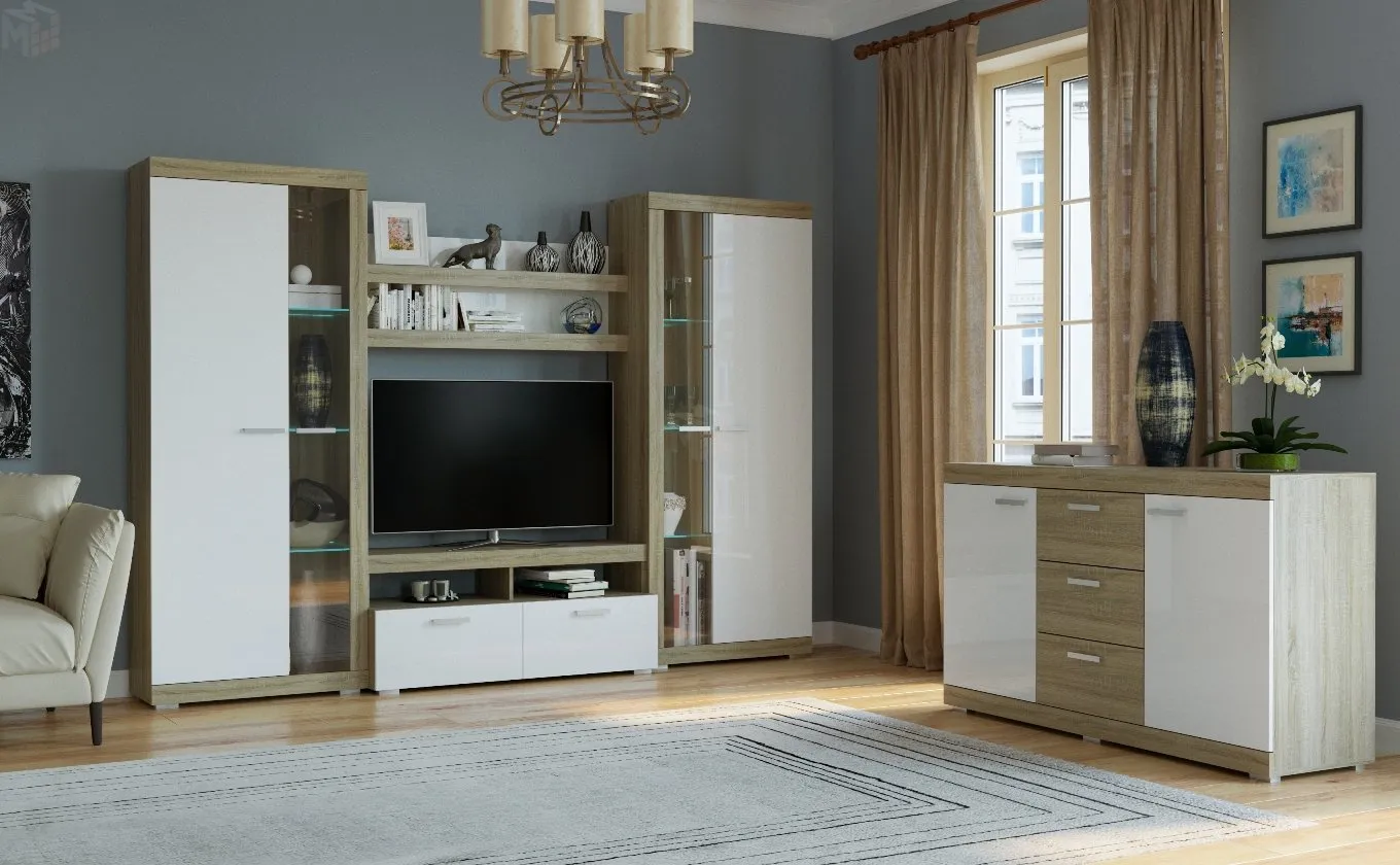 Гостиная Соната Композиция 4 Дуб Сонома - Белый глянец