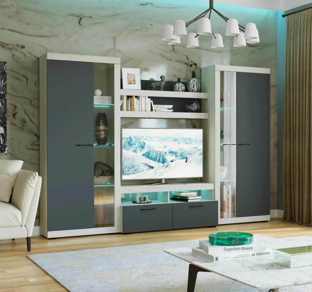 Цена комплекта Дуб Крафт белый - Антрацит; Дуб Сонома - Белый глянец зависит от стоимости модулей