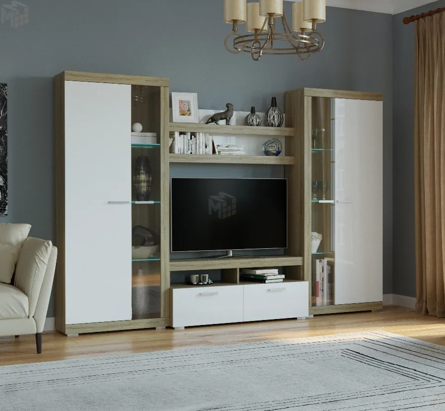 Цвет гостиной Дуб Сонома - Дуб Сакраменто, Дуб Крафт белый - Антрацит, Дуб Сонома - Белый глянец №1 -