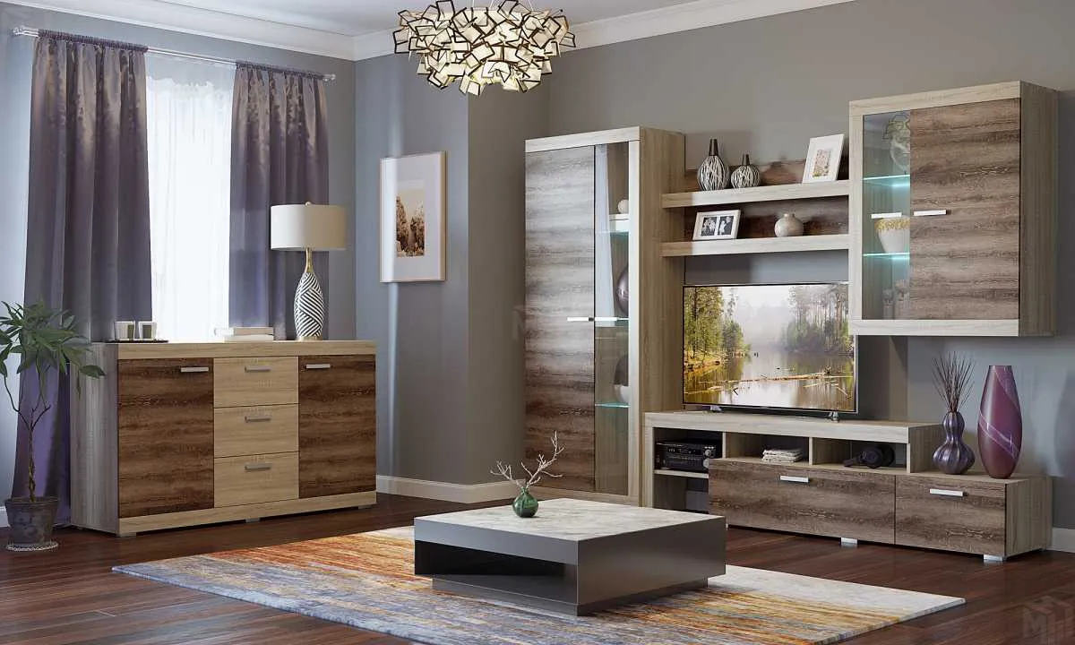 Цвет гостиной «Дуб Сонома» - «Дуб Сакраменто». -