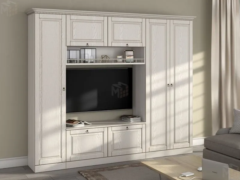 Белоснежная гостиная Вероника, с элегантной патиной, в совершенном классическом стиле, не громоздкая, но вместительная.