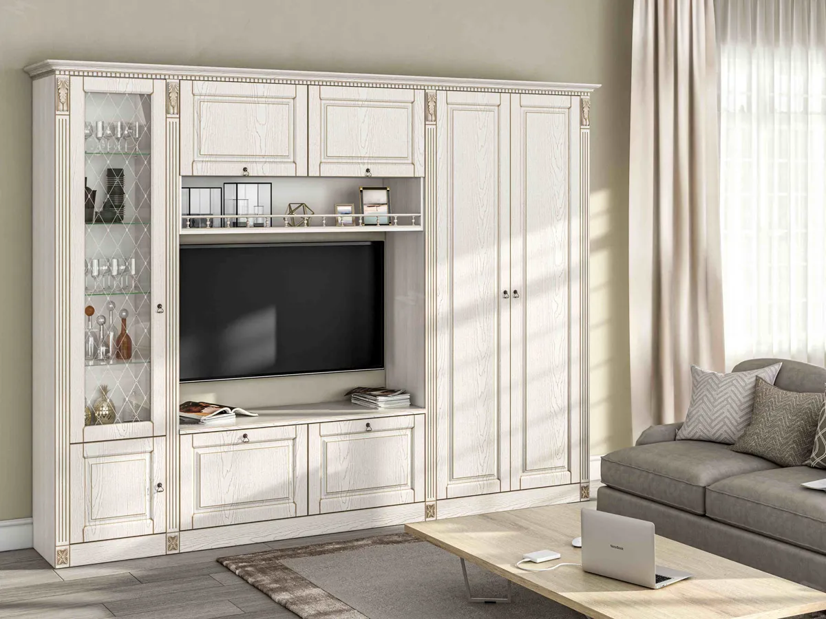 Белоснежная гостиная Вероника, с элегантной патиной, в совершенном классическом стиле, не громоздкая, но вместительная.
