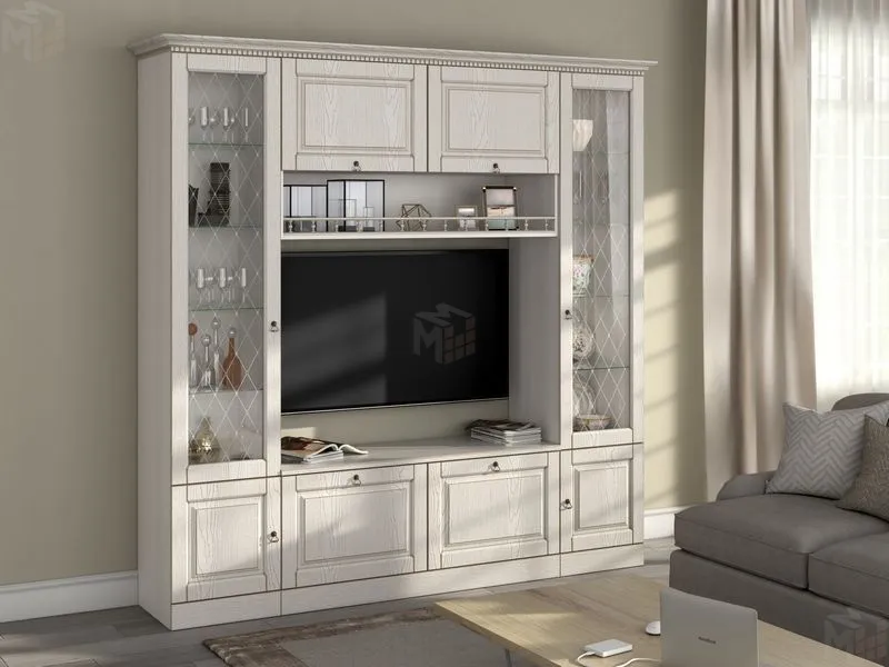 Белоснежная гостиная Вероника, с элегантной патиной, в совершенном классическом стиле, не громоздкая, но вместительная.