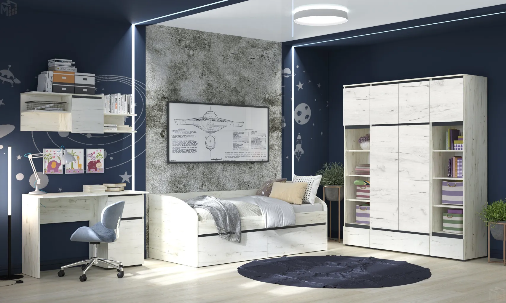 Кровать-софа ГРЕТТА с ящиками Дуб Крафт белый