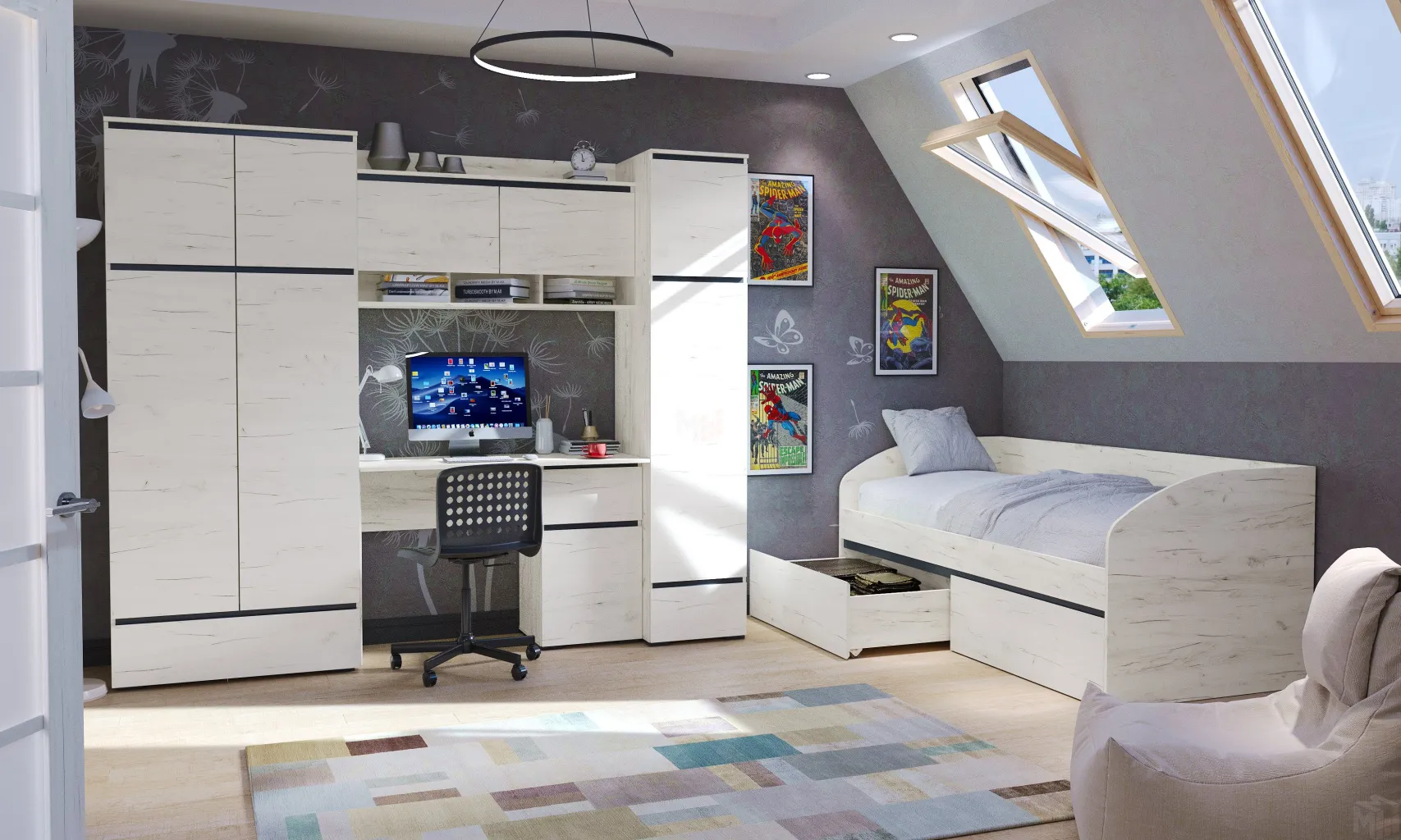 Шкаф ГРЕТТА 4С1Я Дуб Крафт белый-Антрацит