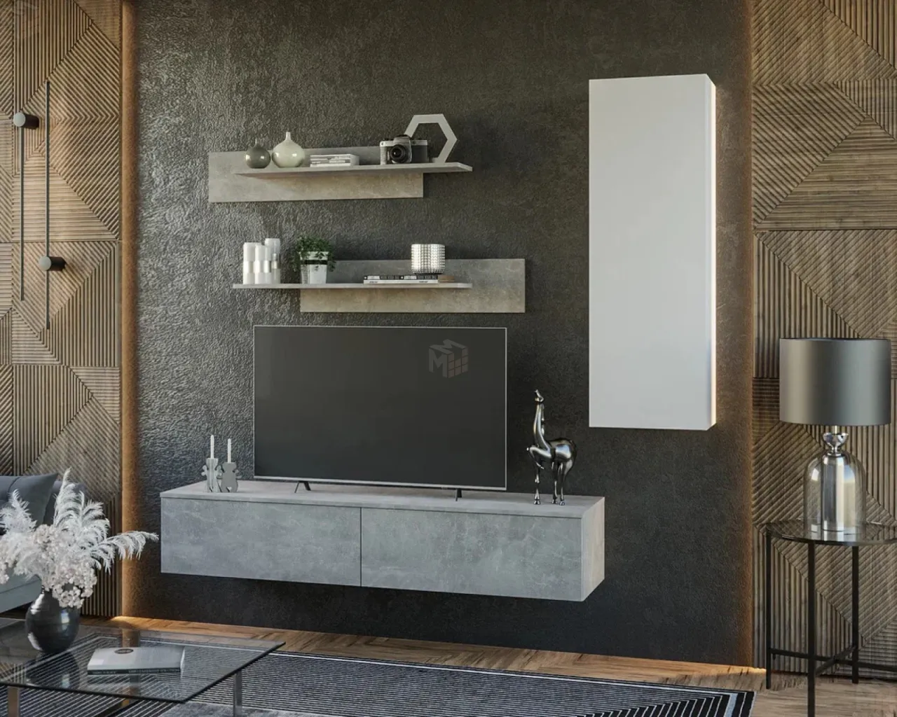 Минимализм с нотками футуризма – это про гостиную «Катрин №1». Отсутствие лишнего декора, строгие геометрические формы, необычная стилистика и внутренняя продуманность выступают отличительными особенностями гостиной.Навесной шкаф закрытого типа добавляет целостности в дизайн гостиной «Катрин №1» и обеспечивает максимальную защиту от проникновения пыли и воздействия внешних факторов.Две открытые полки позволяют располагать предметы декора, книги и сувениры, а закрытый горизонтальный шкаф удобно использовать как систему хранения для повседневных предметов обихода. Еще одной функциональной особенностью закрытого горизонтального шкафа выступает его применение под широкую столешницу, на которой можно размещать цветы, различные предметы декора и телевизор.