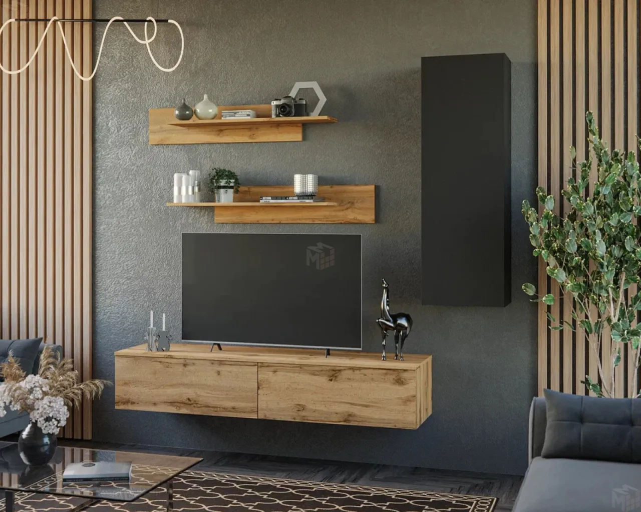 Минимализм с нотками футуризма – это про гостиную «Катрин №1». Отсутствие лишнего декора, строгие геометрические формы, необычная стилистика и внутренняя продуманность выступают отличительными особенностями гостиной.Навесной шкаф закрытого типа добавляет целостности в дизайн гостиной «Катрин №1» и обеспечивает максимальную защиту от проникновения пыли и воздействия внешних факторов.Две открытые полки позволяют располагать предметы декора, книги и сувениры, а закрытый горизонтальный шкаф удобно использовать как систему хранения для повседневных предметов обихода. Еще одной функциональной особенностью закрытого горизонтального шкафа выступает его применение под широкую столешницу, на которой можно размещать цветы, различные предметы декора и телевизор.