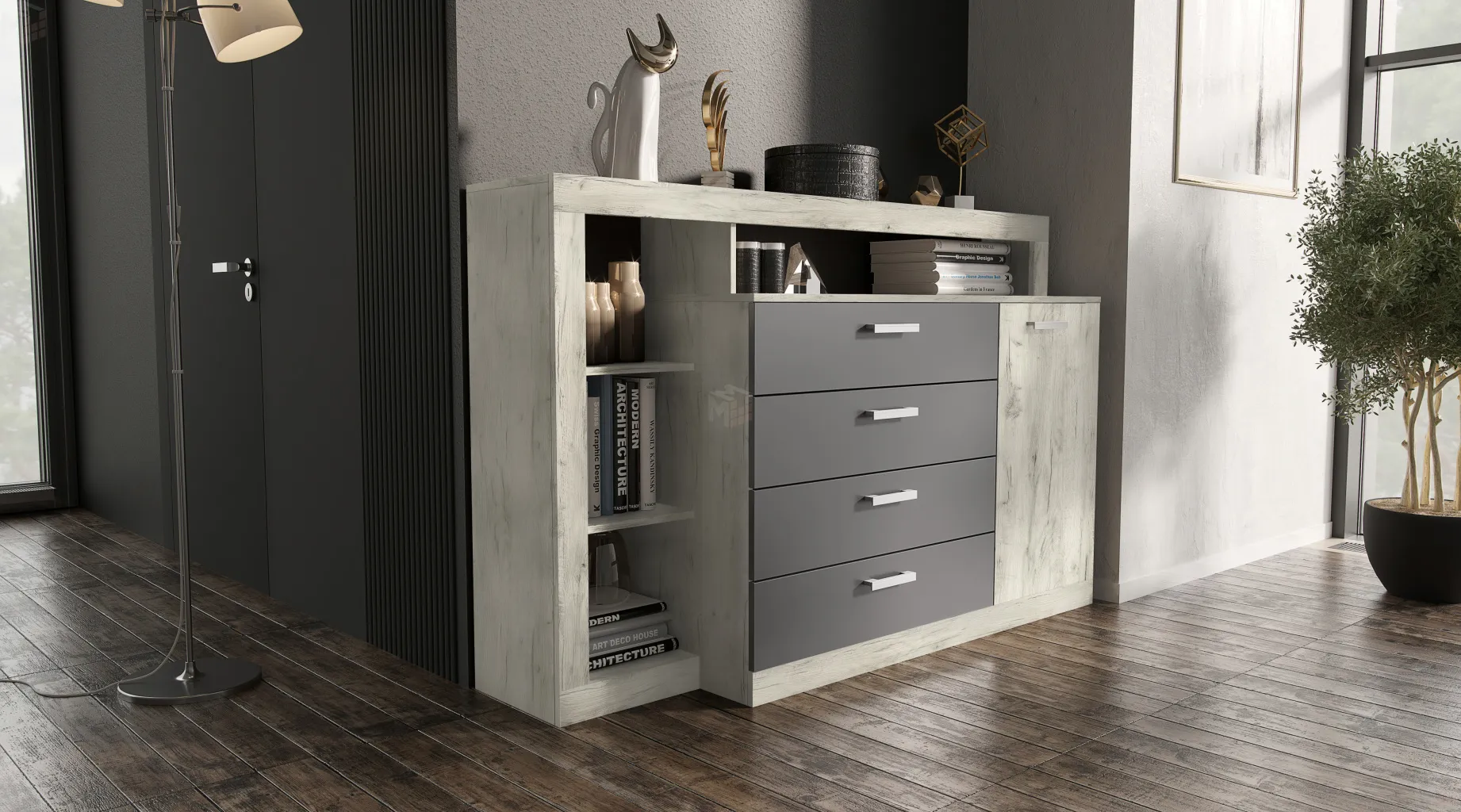 Комод Ангара (крафт белый/графит)