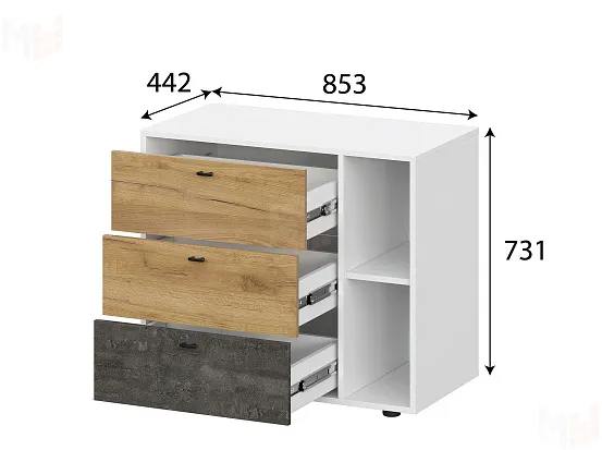 Ширина: 853 мм, Глубина: 442 мм, Высота: 731 мм