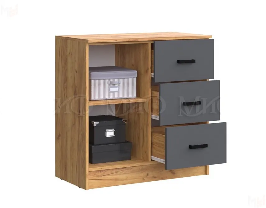 Комод Бася 3 ящика, 1 дверь (крафт золотой/графит)