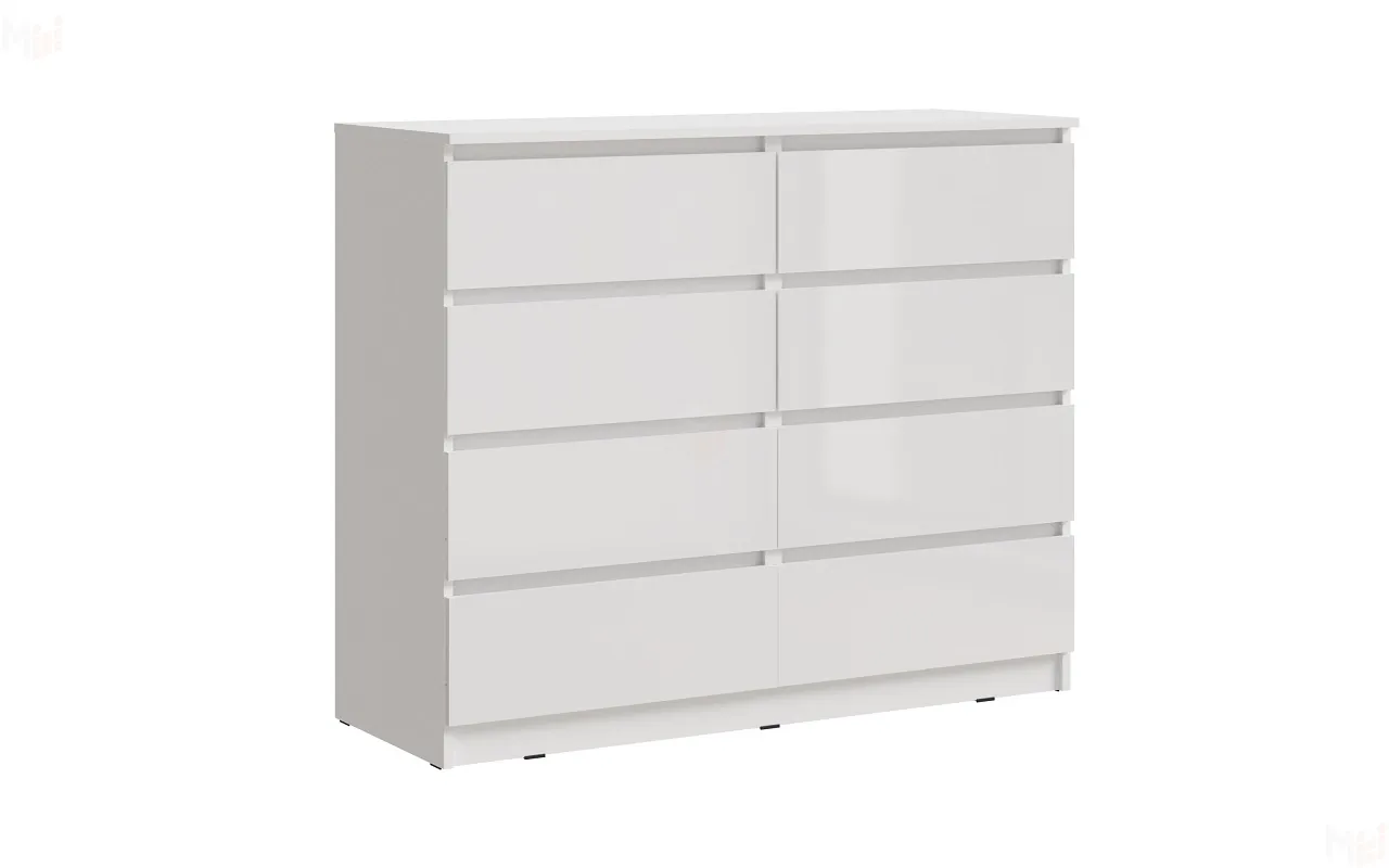 Комод выполнен из ЛДСП белого цвета, фасады ЛДСП Белый глянец.
