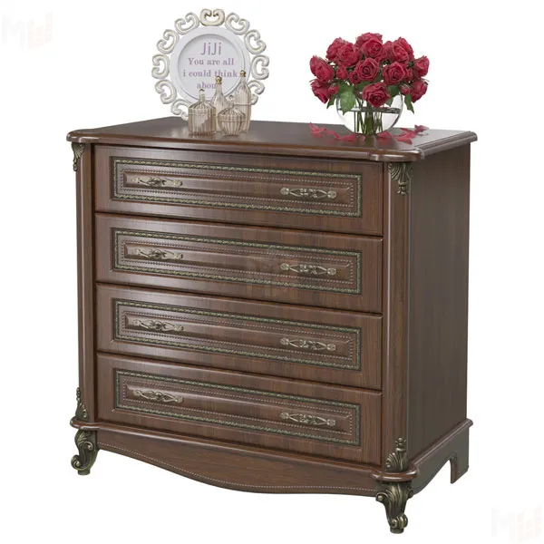 - Ажурные розетки с кристаллами, фигурные карнизы и изогнутые ножки с флористическим орнаментом, ручки под старину утончённо украшают модели.