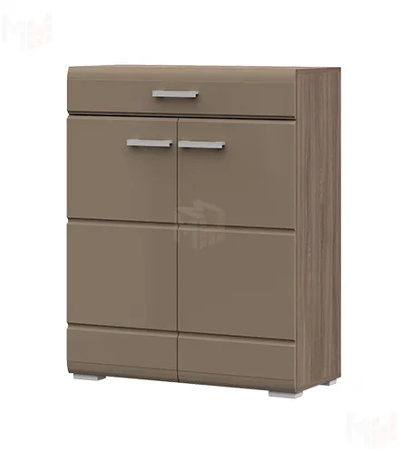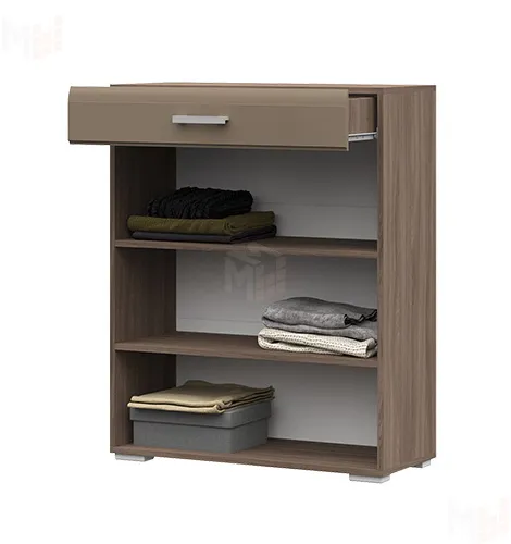 Комод оснащён тремя закрытыми полками за двумя створками и одним вместительным выдвижным ящиком.
