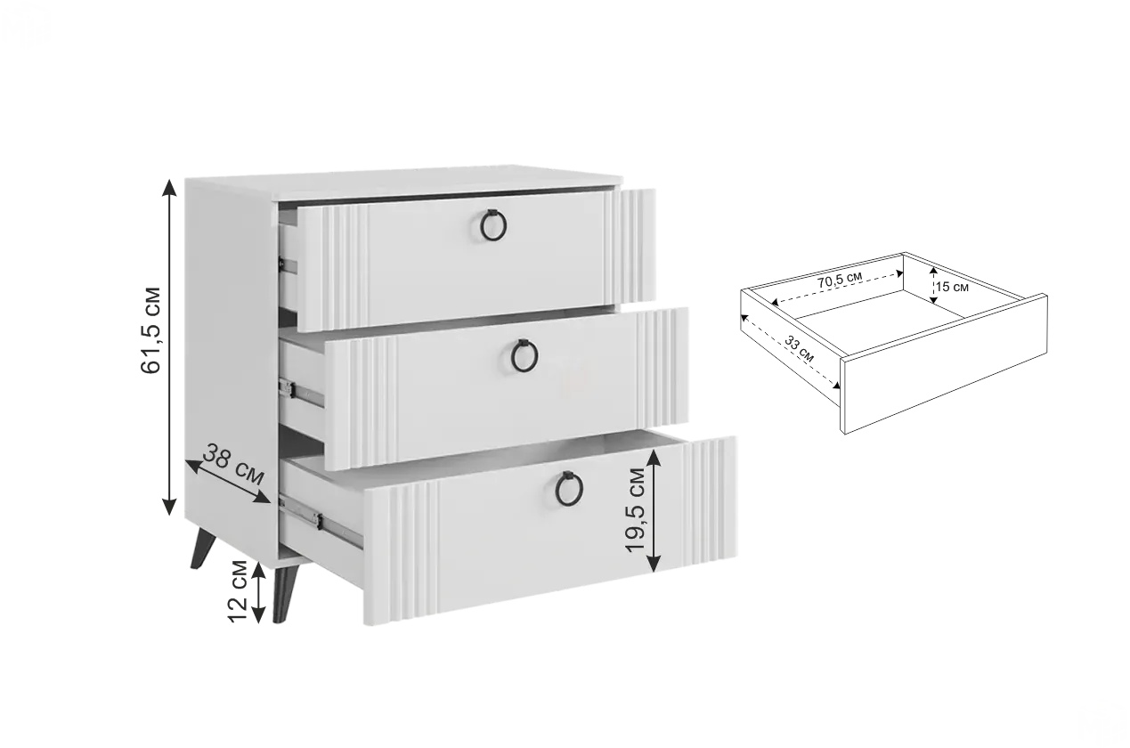 Комод Ева белое дерево/белый матовый