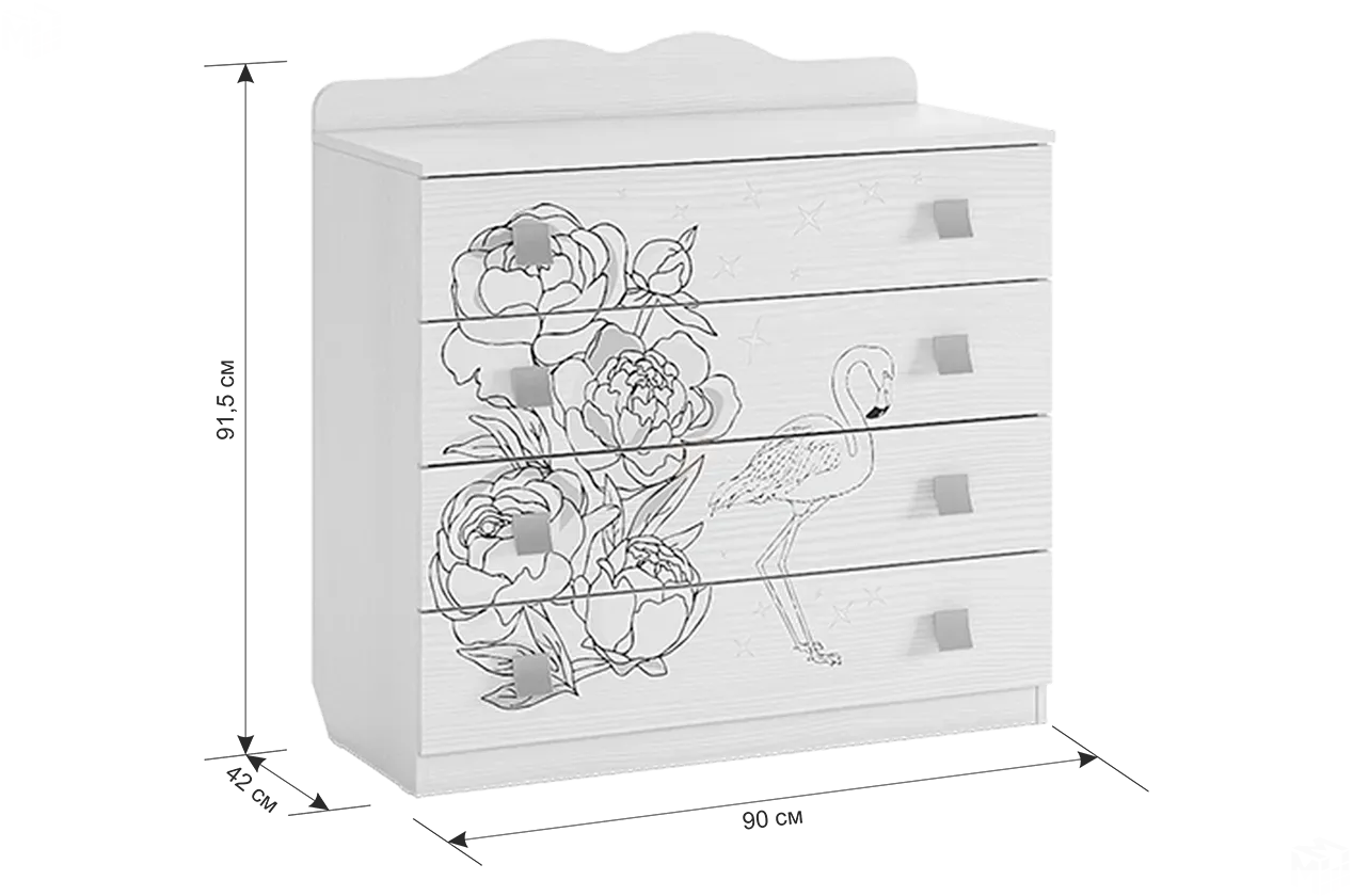 Ящики: четыре просторных отделения с роликовыми направляющими для хранения детских вещей, белья или игрушек.
