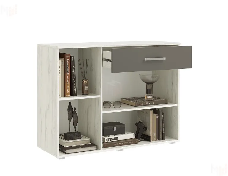 Корпус выполнен из ЛДСП Крафт белый, фасады ЛДСП Графит. -
