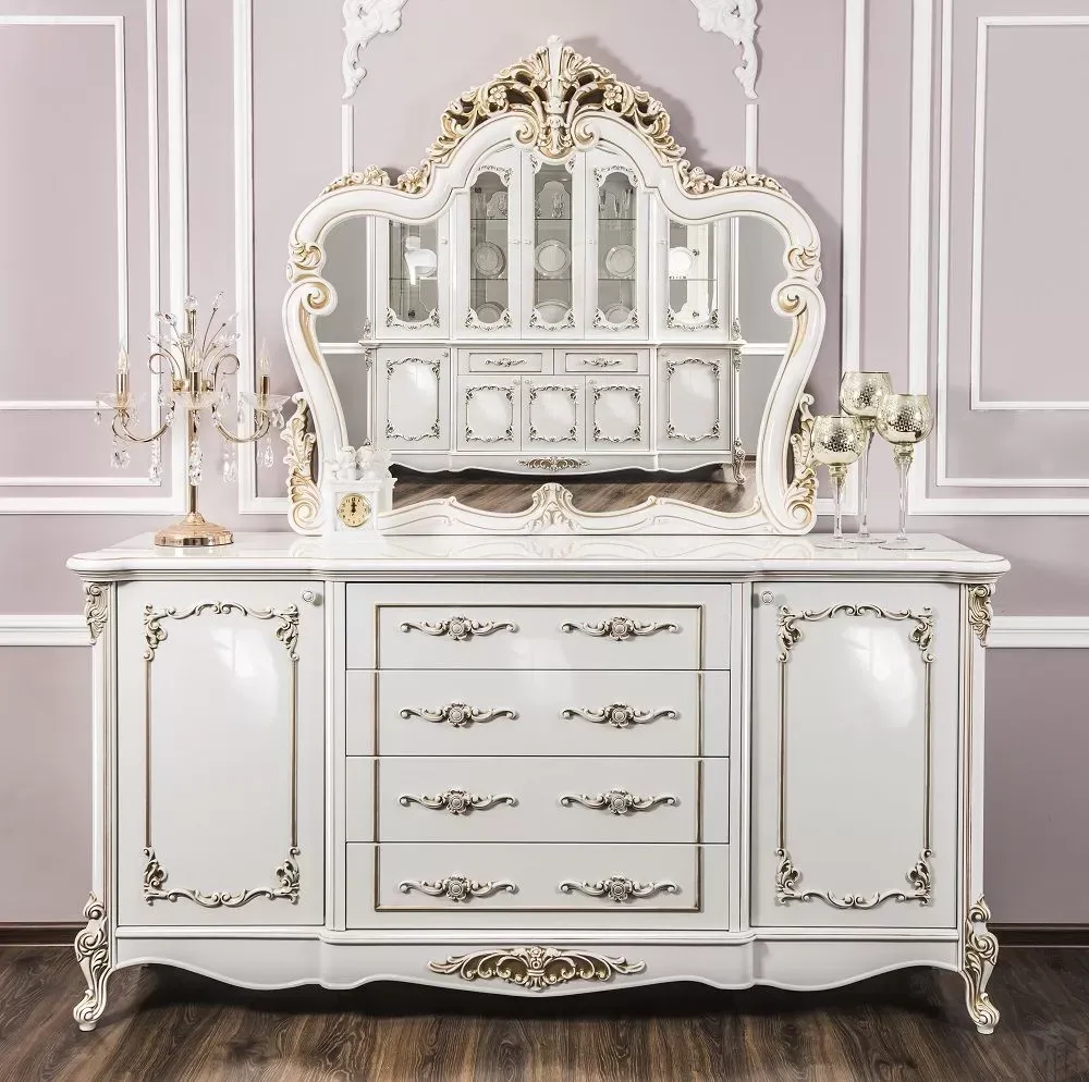 Декоративные элементы, фасады, накладки покрыты золотой патиной и матовым лаком