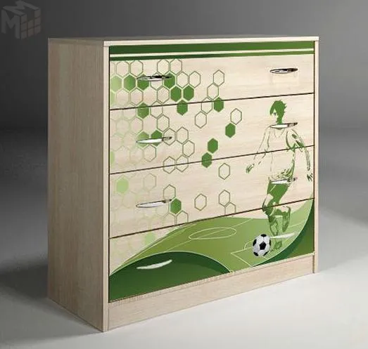 Комод серии Фанки Кидз Футбол ФУТ-13/5 - модуль для размещения детских вещей. В его состав входят четыре выдвижных ящика. Выдвигаются они за счет роликовых направляющих.