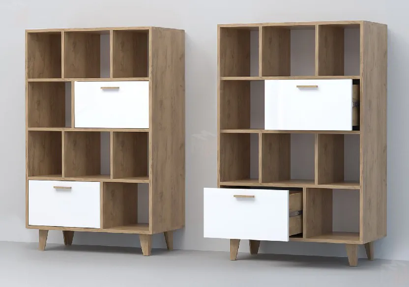 Комод оснащен двумя выдвижными ящиками на шариковых направляющих полного выдвижения.
