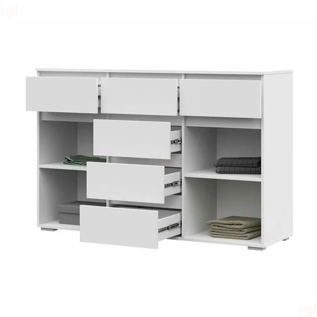 Корпус комода выполнен из ЛДСП Белый, фасады ЛДСП белый.
