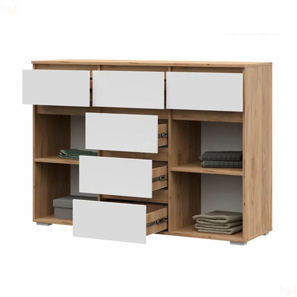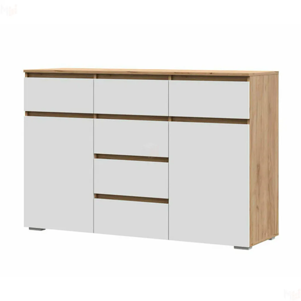 Корпус комода выполнен из ЛДСП Крафт золотой, фасады ЛДСП белый.
