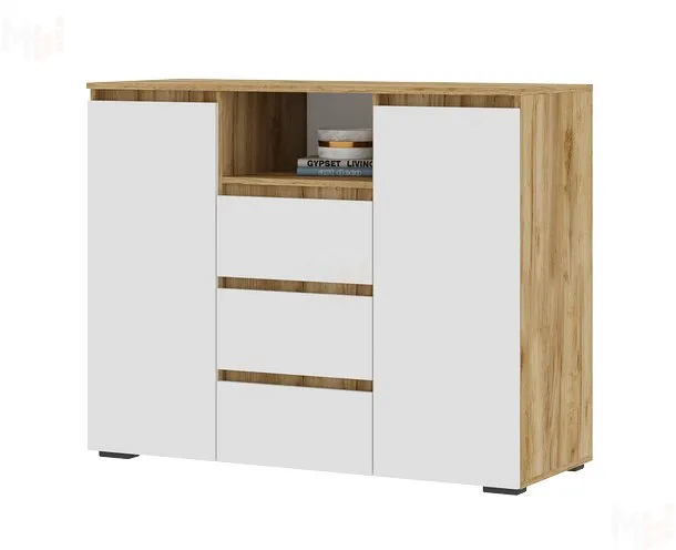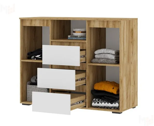 Стильный и функциональный комод для вашей спальни в цвете дуб крафт золото - белый