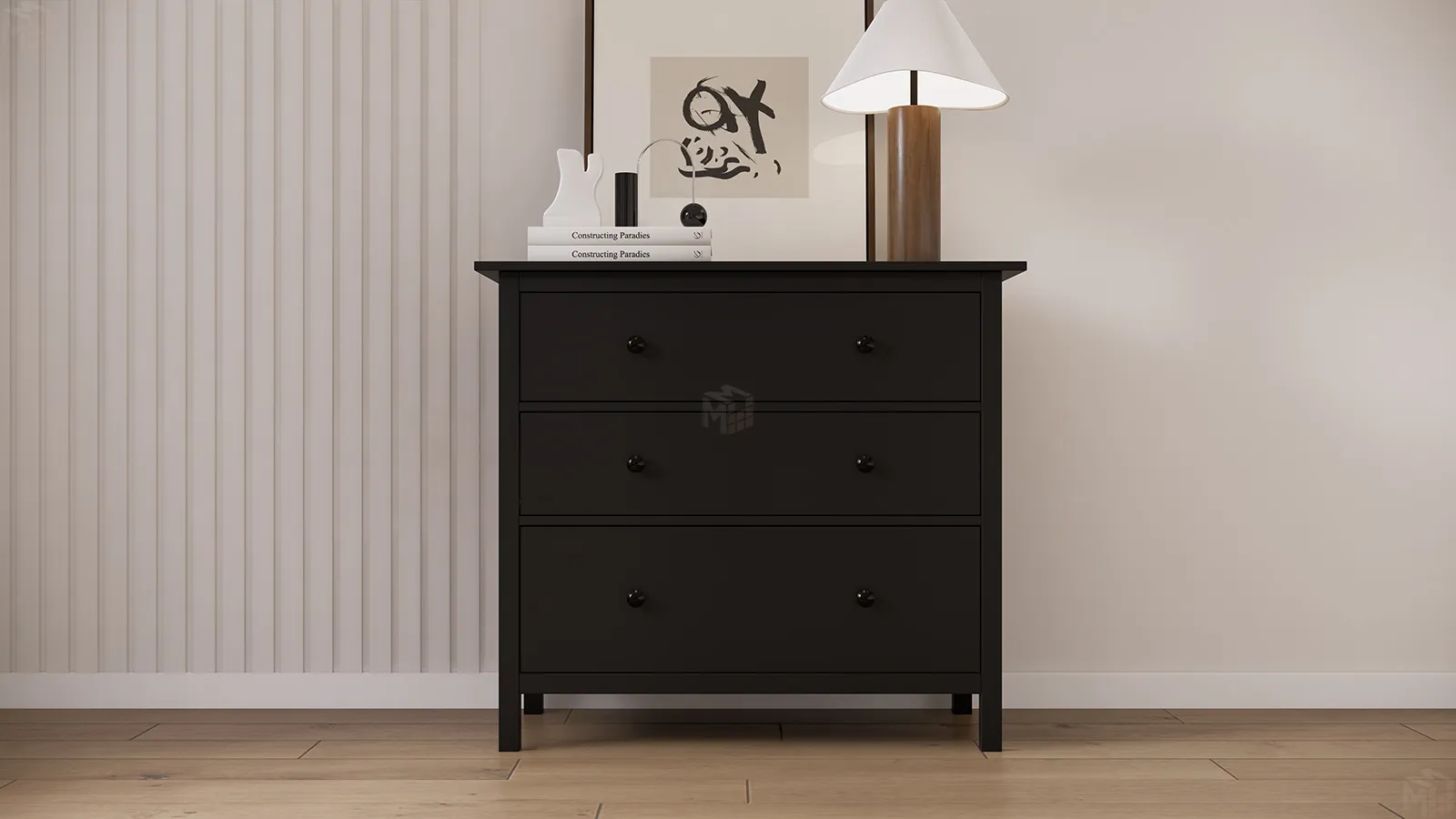 КЫМОР Комод с 3 ящиками - идеальное решение для организации хранения ваших вещей! Изготовленный из массива сосны, он гарантирует прочность и надежность.